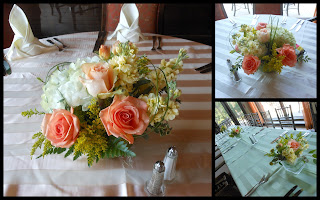 Nicklas had a softer color scheme with peaches, buttercream yellows and whites. With white hydrangeas as a base for these table arrangements the peach roses and buttercream stock added just the right amount of contrast and texture.
