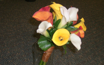 This mix of miniature calla lilies is a striking design of beautiful line, simplistic texture and contrasting color. We love weddings!!!