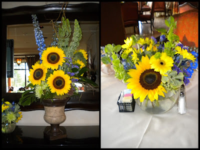 This photograph was for a more casual lunch. Now, I don't know about you, but I can't get enough of these giant sunflowers. They are litterally the size of my face, you can't help but smile when you see them. And who doesn't love a casual country feel with sunflowers and blue delphinium?
