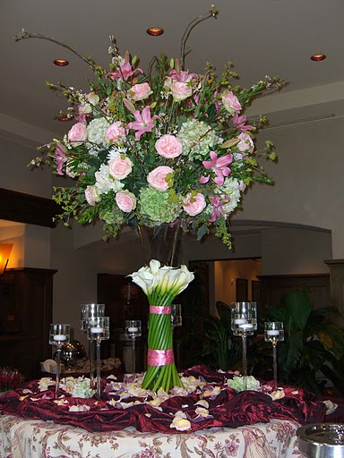 This beautiful centerpiece for Mothers Day was a showstopper, with Calla lilies swirling on the outside of the ease and a giant arrangements of lilies, roses, hydrangea and cherry blossom branches, it was truly amazing.