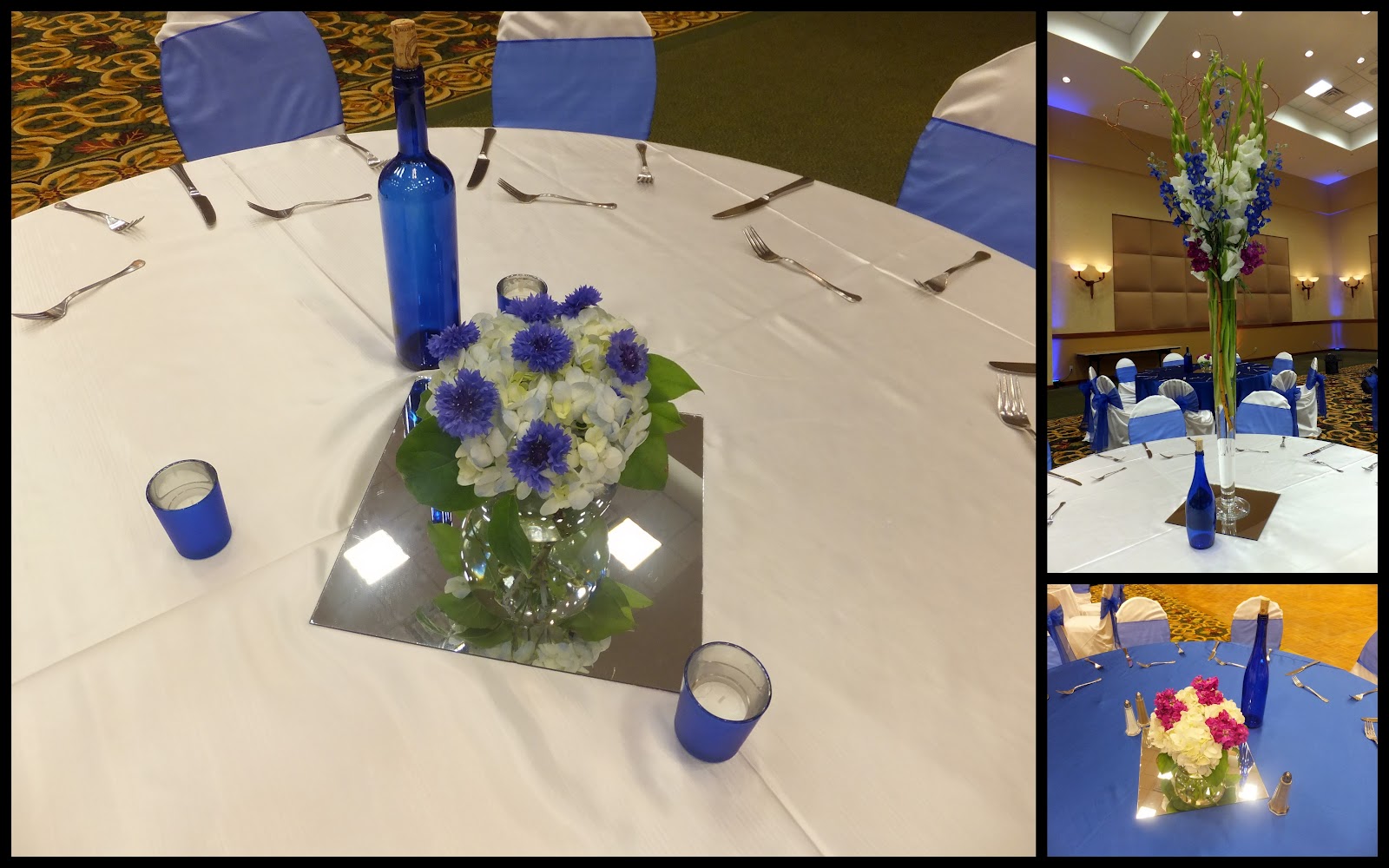 The reception was held at the Woodlands Resort and Conference Center. In such a large ballroom we often encourage the use of multiple styles of arrangements. By having different heights throughout the room you automatically increase the "wow" factor for your guests, plus it makes a big room feel more intimate.
