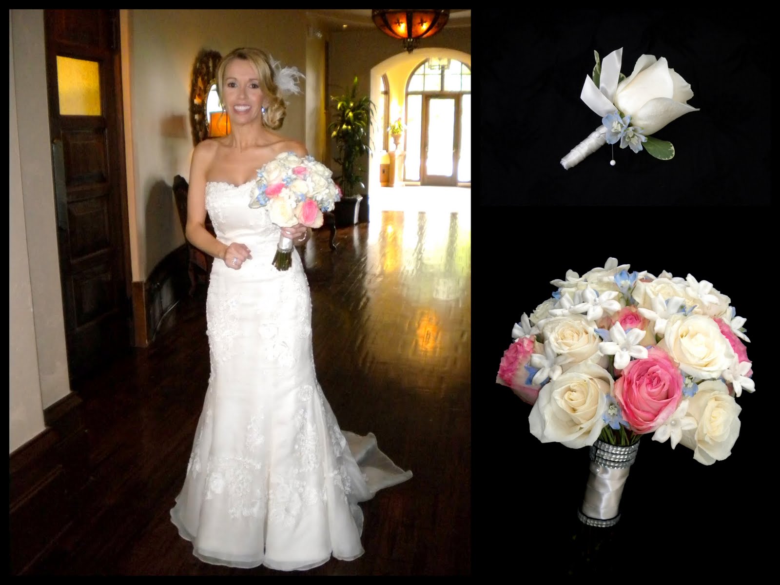 There is something about the weather in spring that is so nice. I love it when mother nature shows off and lets all her favorite flowers burst into bloom. This beautiful bride got to enjoy the best of the season.Her bouquet was a beautiful mix of soft pink and white roses with Stephanotis blooms while her boutonnieres were a simple white rose with a blue delphinium bloom accent. While outside she... -