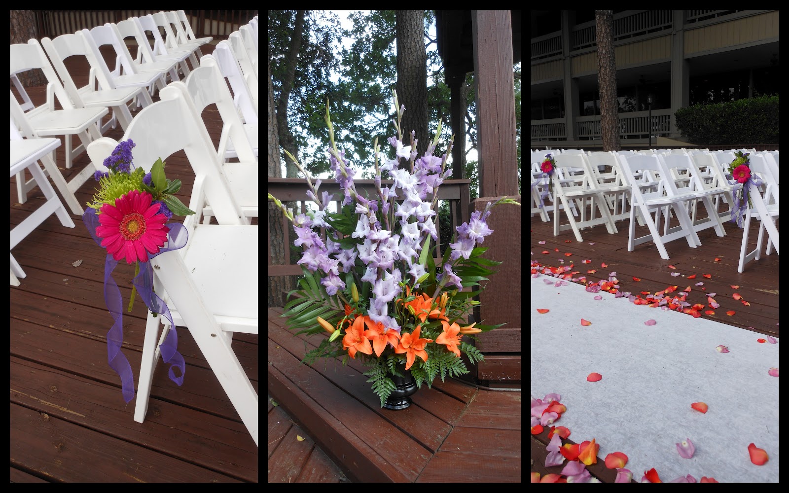 The floral tie backs and pew decor for The Forest Deck at The Woodlands Resort and Conference Center were filled with a variety of... -