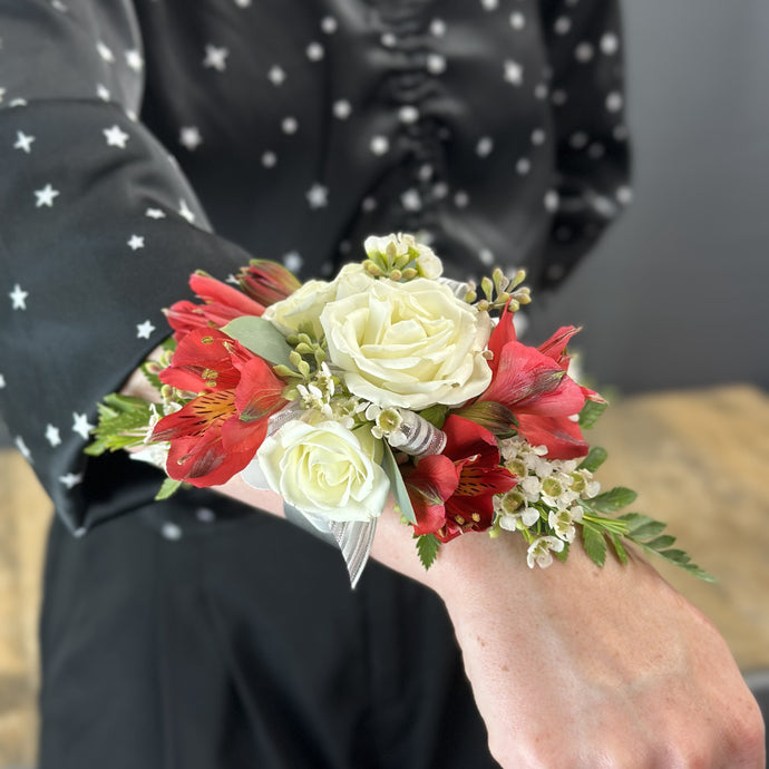 Red & White Corsage