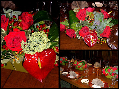 It's amazing what a little color and interesting textures can do to dress up a dinner table. These fun coordinating centerpieces, along with out chocolate beaded votive holders created a fun, and visually interesting table scape for our guests.