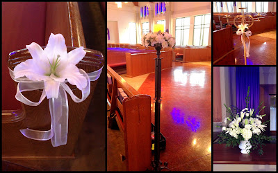 The ceremony was held at St. Anthony of Padua Catholic Church in The Woodlands. With Candle wreath pew markers, stunning white altar... -