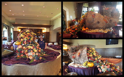 As we near the end of the year we want to do a re-cap of our fabulous 2012 holiday season. I'd like to start with Thanksgiving. This year at The Club at Carlton Woods we amazed the crowds with a full, lucious and absolutely divine giant cornucopia. This beautiful showpiece was overflowing with lilies, mums, antique green hydrangea, flat copper wire, roses, cabbage, lotus pods, bitter sweet and other fun textures. It was a sight to behold!