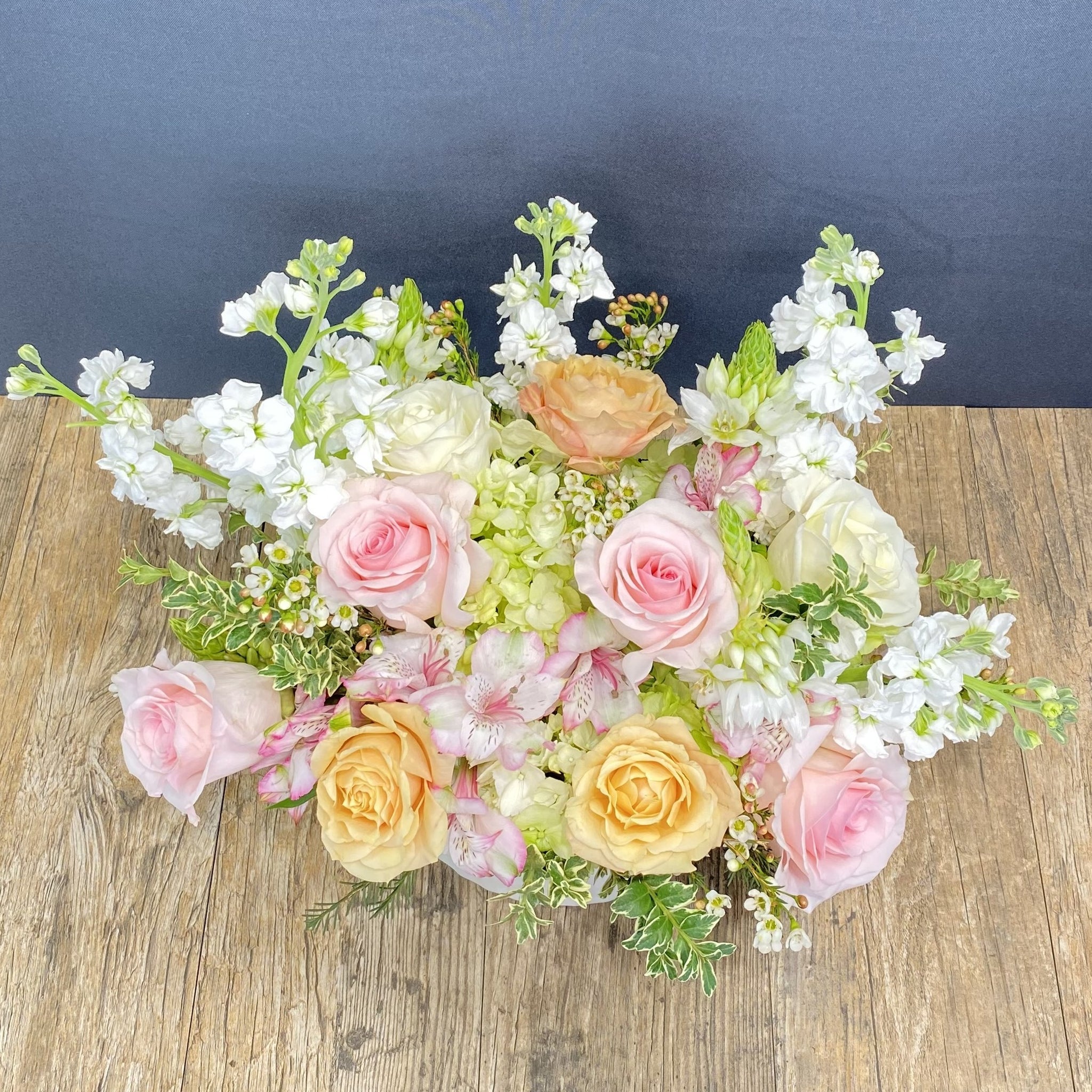 **PRODUCT DISCLAIMER** Our photos are representative of the overall color palette and design theme. Containers and flowers are subject to availability and may not match exactly what is shown in the web image. In the event that we have to substitute, our talented team of designers will ensure the integrity of your choice is preserved and will only use items of equal or higher value.